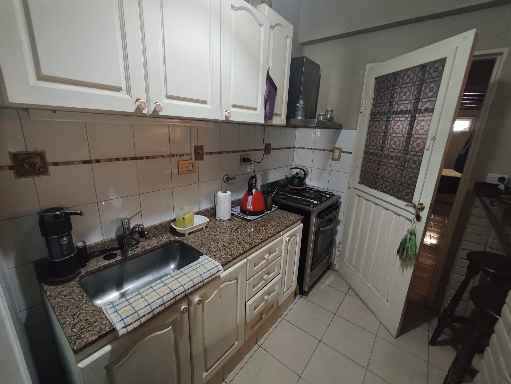 Este departamento contrafrente, con orientación SO, se encuentra en un edificio de 2 pisos con 4 departamentos por piso. Permite mascotas. La cochera es semicubierta.